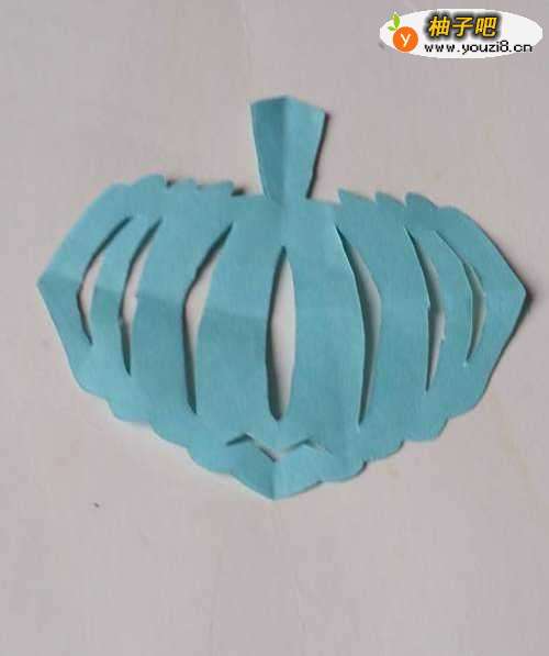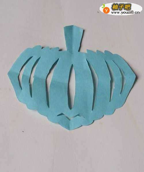 8最后再次把纸展开, 南瓜剪纸就完成了,像不像。