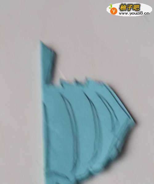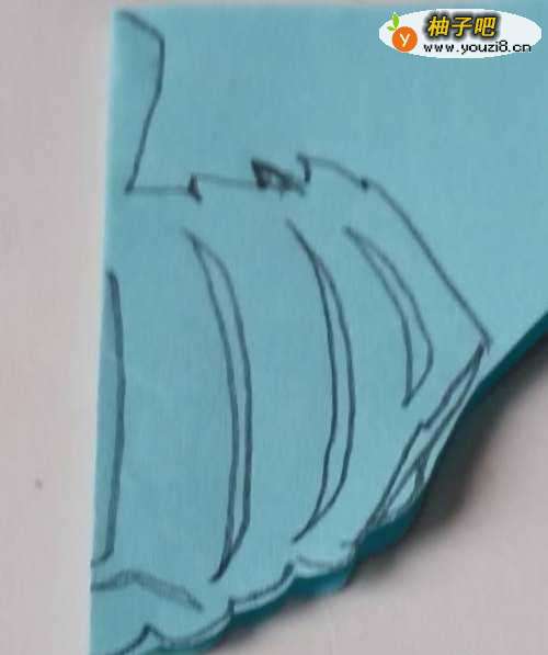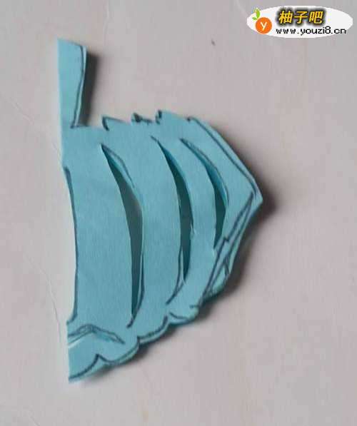 7我们再用剪刀把里面的南瓜纹路用剪刀沿线剪出来