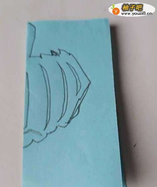 2我们在纸上画上一个南瓜柄,然后再往下画上南瓜的外部轮廓