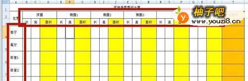 2表格做好后,必须实地测量尺寸,准备一把3米长的卷尺即可,所测数据填写在以下表格中,若无,则写0。其中,房间的高度都是一致的,所以填同一个数据即可。