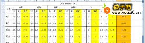 计算墙面面积比较复杂,如果一个个地累计,会累得晕头转向,不急,小编准备了一份工作表表格,如图设计即可,厨房、阳台、卫生间都会贴墙砖,所以只需计算客厅、餐厅、卧室的即可,每个房间包含顶面、4个侧面,如果间不规则,则在以下表格中添加。