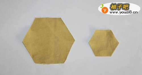 4接着我们用剪好的六边形纸剪出两个六边形的布料。