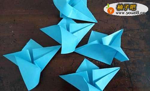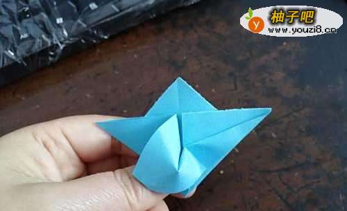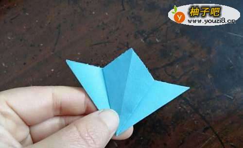 5剩下的彩纸按照上边的步骤操作完成,然后把它们拼在一起,把上边的角折到里边去。