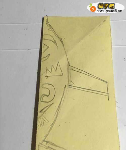 2第二步 折叠完之后 把它竖起来 双边在左 拿起绘图铅笔画上飞机的机身的外线草图轮廓