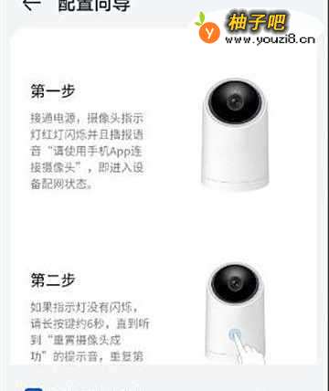 4连接电源线,摄像灯变红并提示进行配网设置。
