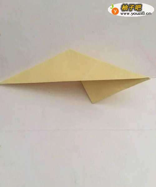 3第三步 折叠完之后 把左边的等腰三角形 向左边平折 然后再从上向下对折整齐