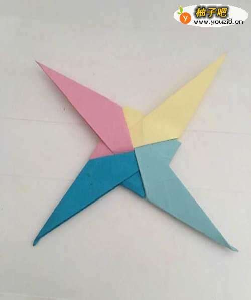 折纸飞镖 是很早之前就有的儿童纸玩具 深受小朋友们的喜爱 玩的时间长了 任何人都可以用课本纸或是废旧报纸 折叠一个不一样的折纸飞镖 下面我们就用四种颜色的彩纸折叠一只漂亮帅气的组合飞镖