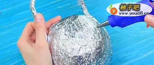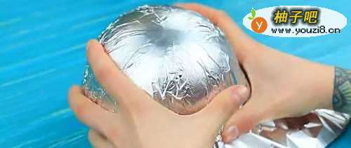 首先用锡纸包裹住泡沫塑料球。