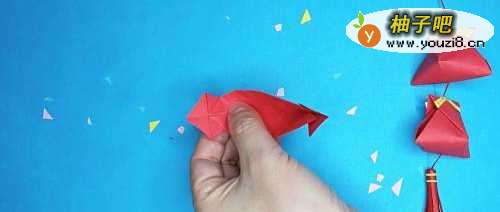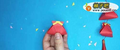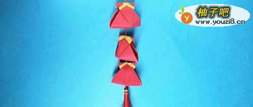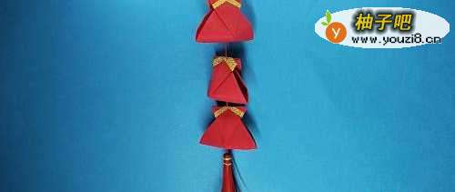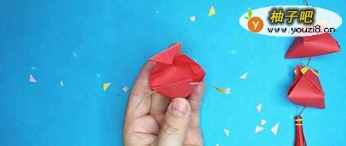 13在红线尾挂上流苏,用针把三个窜起来,这样就制作完成啦!