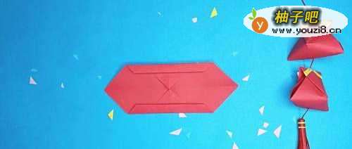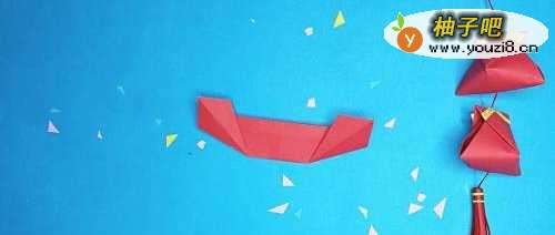 12用黄色长条纸贴在上边里面,再交叉合起来,粘在背面,同样的再折2个
