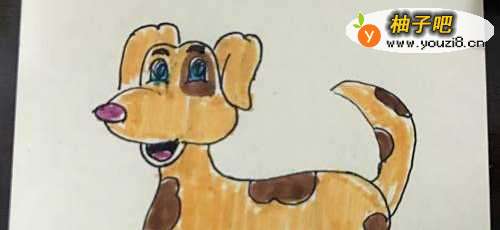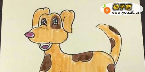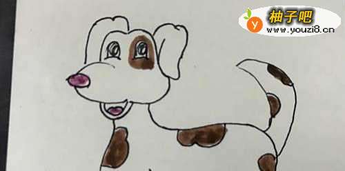3可以用棕色的水彩笔绘制出狗的斑纹。绘制完成后换一支笔。