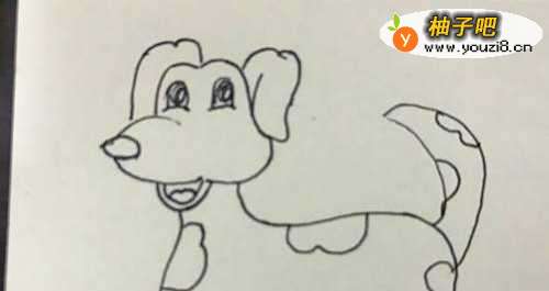 2然后绘制出狗的身体,用黑色水笔就可以。绘制完成后等它干。