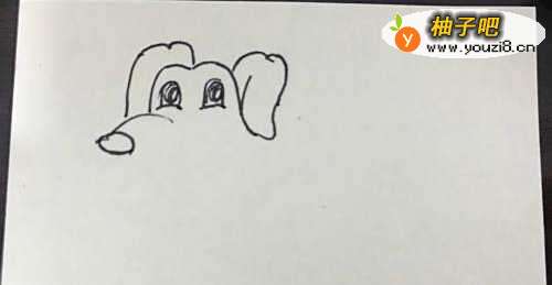 首先先绘制狗的眼睛和耳朵,画出鼻子。这样基本的定位就差不多了。