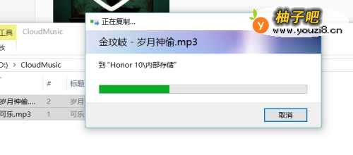 7点击发送后页面就会显示正在复制的进度,等待复制完成即可将歌曲传输到手机中。