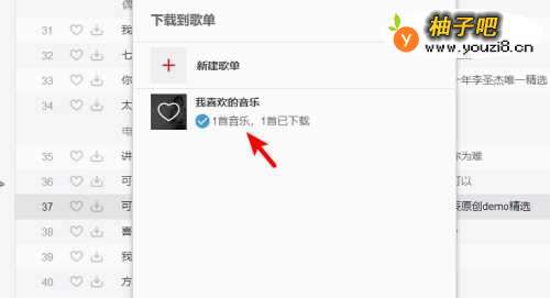4点击后在弹出的选项内,将歌曲下载到我喜欢的音乐中。