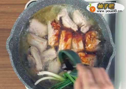 4加葱姜、料酒和生抽,陈醋,白糖都倒进去