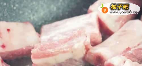 6把煮好的排骨捞出,加白糖熬成的糖浆,搅拌均匀