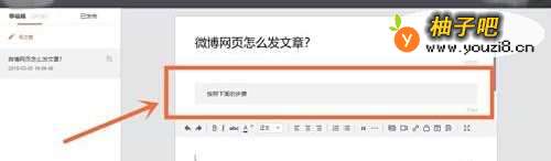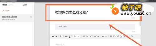 33、现在标题区域输入标题,比如“微博网页怎么发文章”。