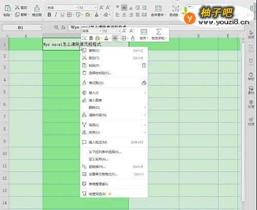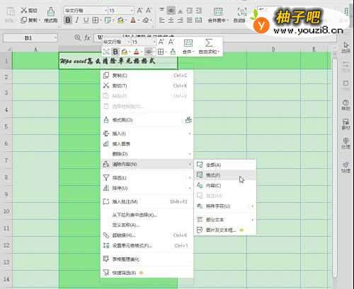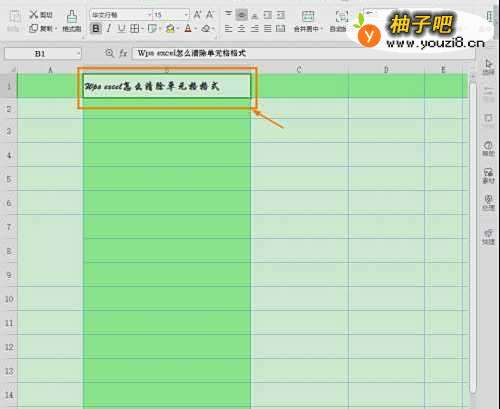 在Wps Excel表格页面,选择要清除格式的单元格【B1】。