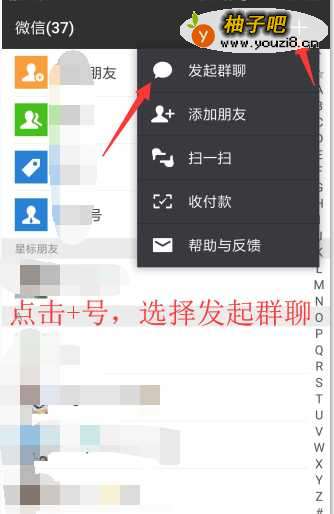 2点击“+”选择发起群聊