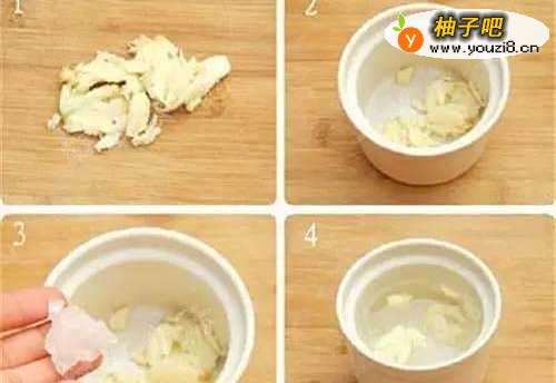3取三四头大蒜,去皮后,将蒜瓣切成一个个薄片。晚上睡前将切片的蒜瓣用火烤,等蒜片烤干、烤黄后,用擀面杖碾碎成末,越碎越好。挖一汤匙蒜末倒入茶杯中,再适当加一点红糖,倒入开水,搅拌均匀,喝下。一天喝一、两杯,连喝三天,咳嗽可愈。