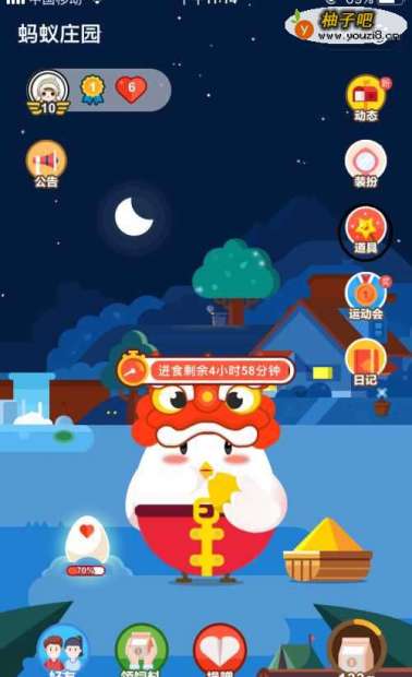 3然后进入到小鸡的界面中点击“道具”按钮。