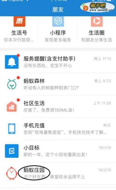 在支付宝册侵闲中点击“朋友”栏案披中宿鬼选择“蚂蚁庄园”。