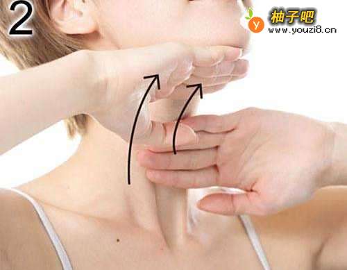 两手手背轮流将下巴往上推挤,重复25-30次。