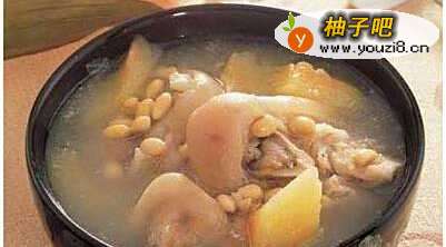 做法:将猪脚切块,并且放入适量的姜片去味;随后加入去掉果核的雪梨、黄豆;加入适量的清水熬住,大火烧开之后十五分钟转为小火慢炖一个小时,之后加入适量的食盐调味就可以起锅了。