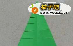 5第五步:在圣诞树的顶部粘贴一颗折纸星星,一颗漂亮的圣诞树就折好了。