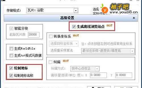 8然后在【高级设置】中选择【生成离线浏览站点】和【绘制地标】,点【导出】。