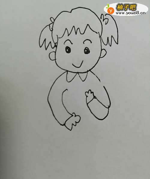 4第四步,接着继续画出小女孩的两只小手臂,注意小女孩小手细节的画法。