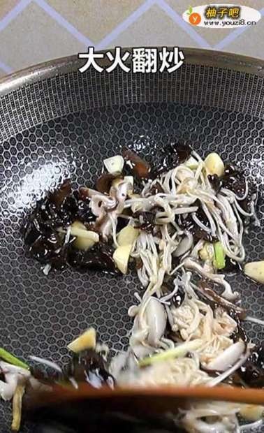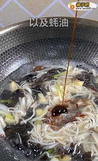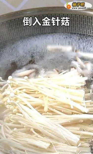 5水开先倒入香菇木耳焯水,水开后倒入金针菇,去除草酸
