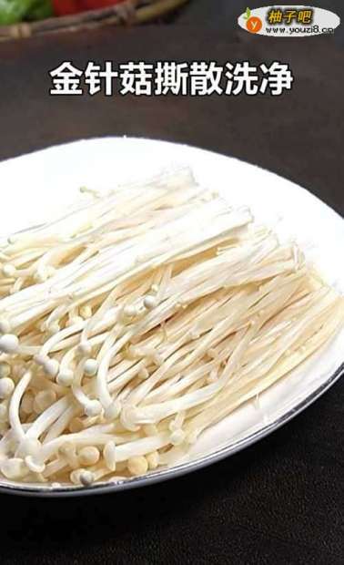 4泡发好的木耳改刀备用,适量的金针菇撕散洗净