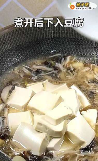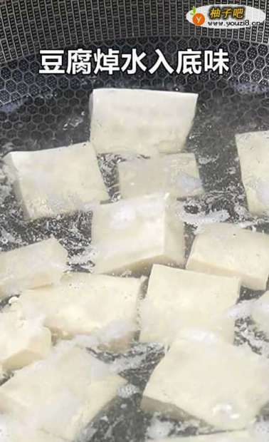 2锅里水烧开加食盐,豆腐焯水入底味,煮一分钟捞起备用