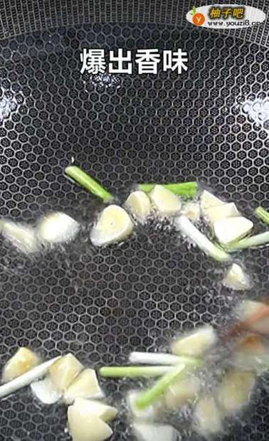 6热锅放油,倒入大蒜和葱段,爆出香味