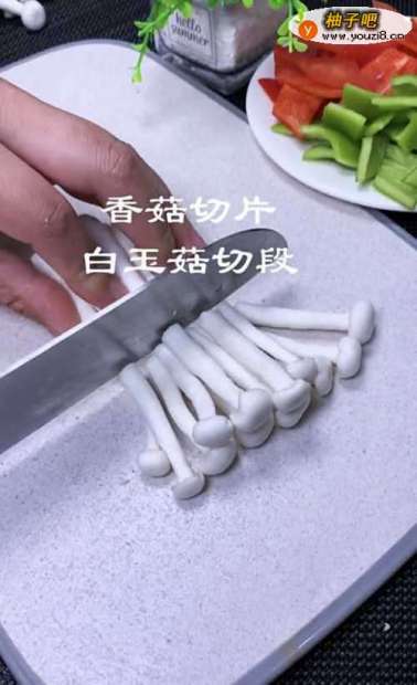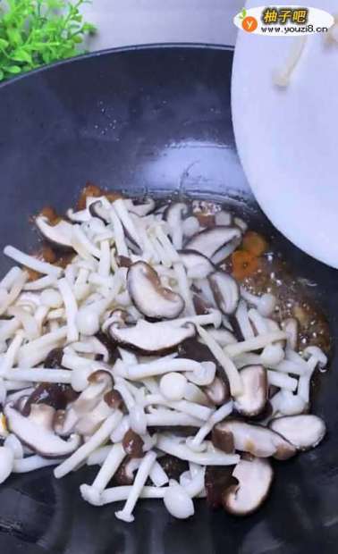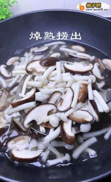 2锅中烧水,水开后下入香菇和白玉菇,焯熟捞出