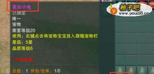 进入游戏后,按B打开背包,右键点击刚获得的【星辰小龟】。