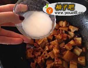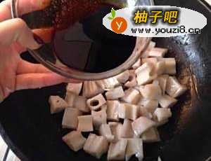 2油热加入藕丁翻炒,加入糖醋汁
