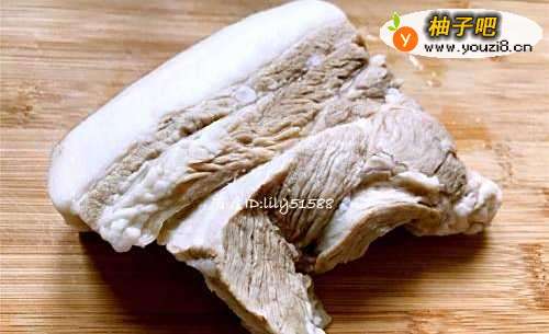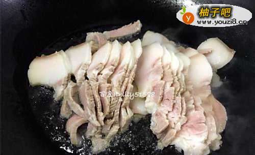 4烧热锅少放一些油,把切好的五花肉放入锅里用中火将肥肉煎制出油,吃起来才不会那么油腻。