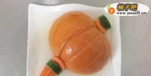 4给蒸好的南瓜做好装饰,再放入锅中蒸个1分钟;