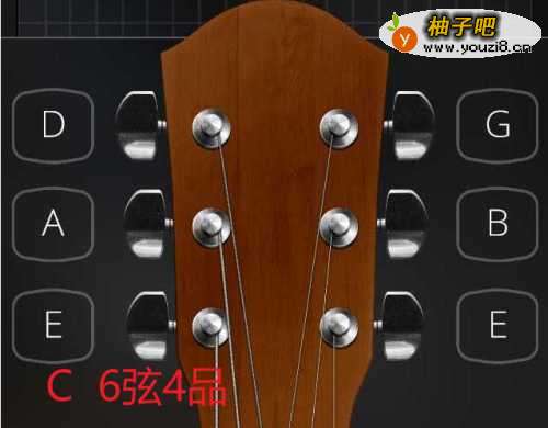 即让6弦4品的音等于6弦标准空弦的音。这样,去掉变调夹,6弦空弦的音就是C了。