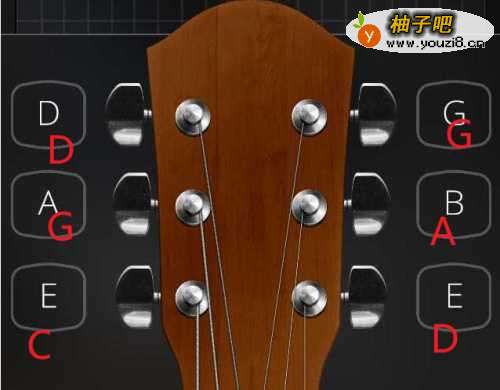 2然后,我们要知道流行的云的特殊调弦,从6弦到1弦的音分别是:C-G-D-G-A-D。那么我们要调成如下图所示。