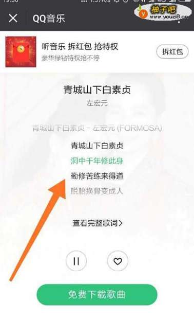 6这时就会出现歌词等信息,点击暂停按钮就可以播放音乐。