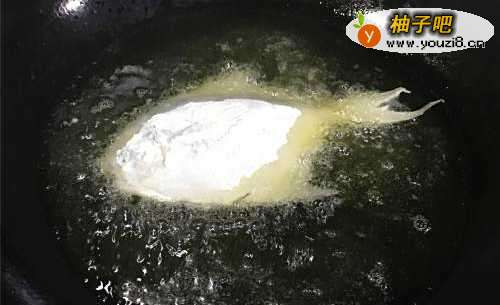 4油锅烧到七成热时,把金昌鱼轻轻的放入锅中,把底下的一面炸至定形后,再换另一面继续炸。