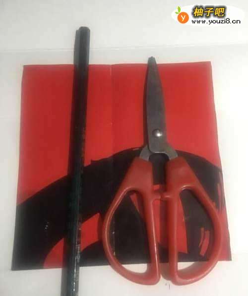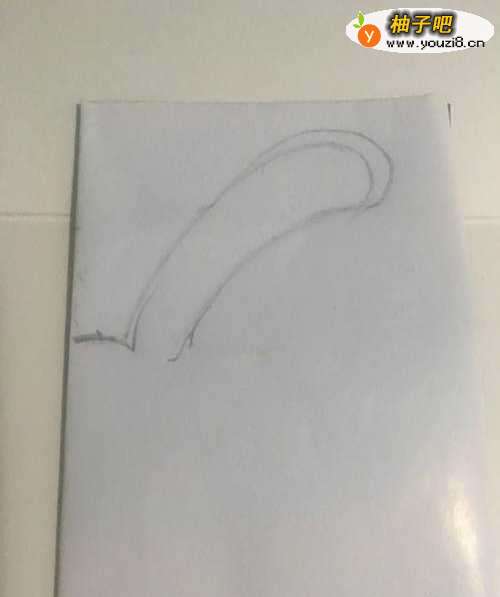 2第二步 折叠完之后竖起来 双边在左 然后拿起绘图铅笔 先画上兔子的两只大耳朵