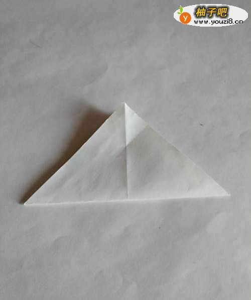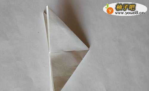 2再次对折成一个小的三角形,将其展开后,翻折成图中所示的形状;