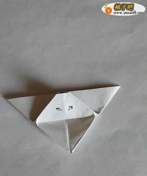 3将其压平,沿着图中的箭头向上折叠;