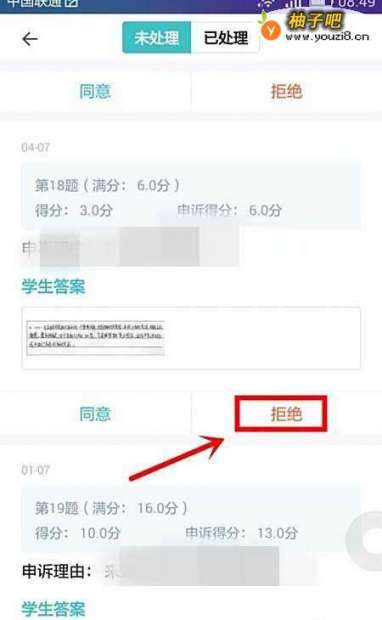 8接下来,我们退回到学生申诉信息页面,如果要拒绝其申诉请求则选择拒绝选项;