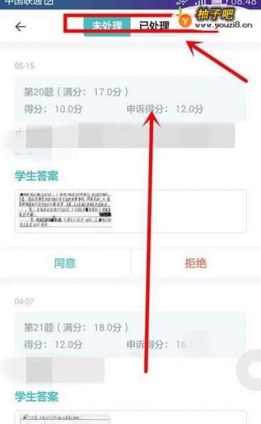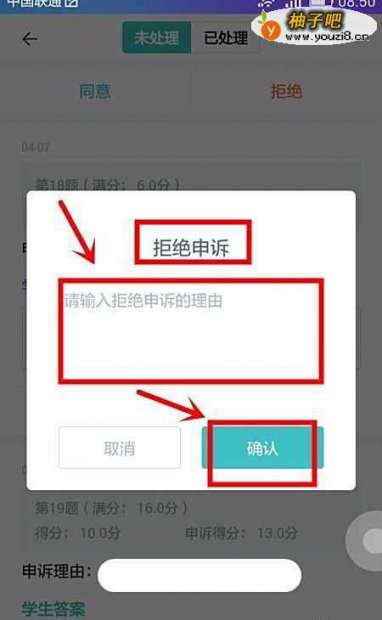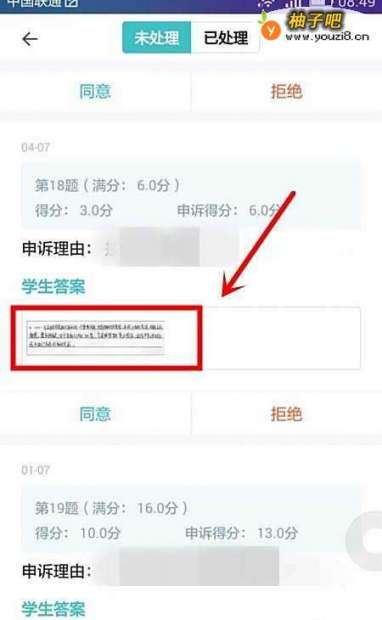 7下面,我们就可看到学生所申诉的答题答案,我们可以通过查看知道学生的申诉是否合理,是否要给与同意申诉;